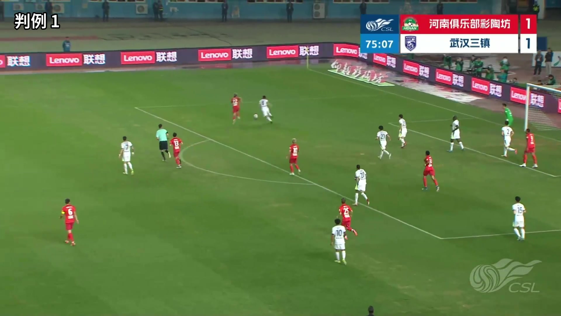 中超联赛第3轮,河南俱乐部彩陶坊VS武汉三镇。比赛第76分钟,裁判员判武汉三镇8号队员在本方罚球区附近对河南俱乐部22号队员犯规,犯规地点在罚球区外,由河南俱乐部踢直接任意球恢复比赛,并向武汉三镇队8号出示黄牌,VAR未介入。